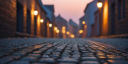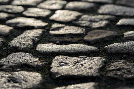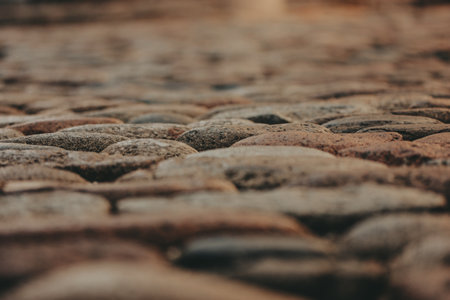 Cobblestone street. This image showcases a detailed view of a cobblestone street. The focus is sharp on the foreground, with a blurred background.