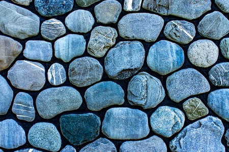 Handmade wall surface. background of large rounded gray stones, pebbles, copy space