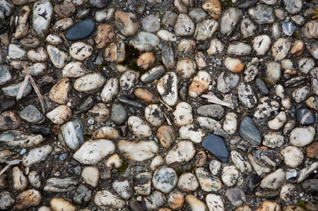 Smooth Rounded Stones Set in Cement with Dirty Debris