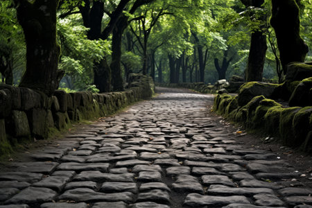 Historical Roman road construction methods, Historic Stones Line Roman Road, AI generated