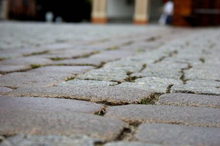Cobblestone street. This image showcases a detailed view of a cobblestone street. The focus is sharp on the foreground, with a blurred background.