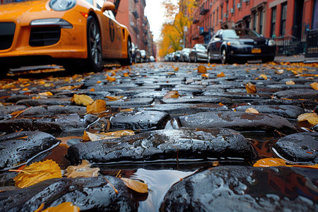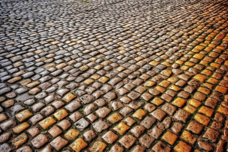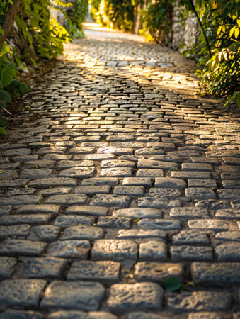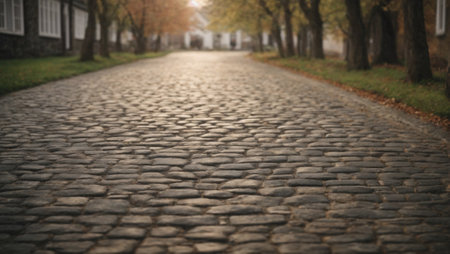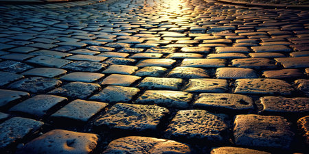 A picturesque stone pathway made of cobblestones and bricks, a testament to architectural heritage, creating a textured background for urban scenes