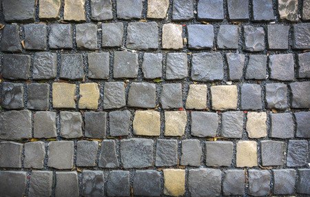 Old cobbles pattern, cobblestone texture, close up view, stone background.