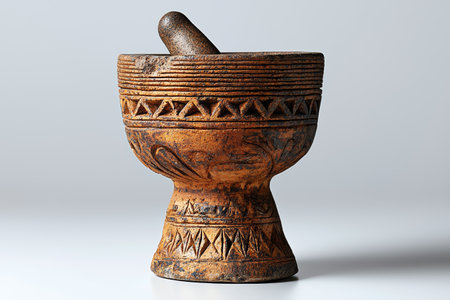 This traditional mortar and pestle set highlights the artistry involved in creating tools for food preparation, reflecting rich cultural heritage.