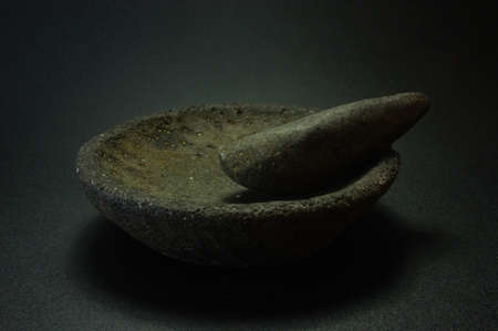 gray cooking ancient stone mortar for grinding spices. Make food.
