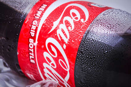IZMIR TURKEY - OCTOBER 6TH, 2016. Close up of Coca-Cola soft drinks bottles. Coca-Cola drinks are produced and manufactured by The Coca-Cola Company, an American multinational beverage corporation.