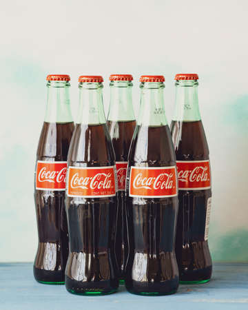 Kharkiv, Ukraine - November 8, 2018: Coca Cola in glass bottles. New Year party beverage.