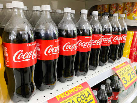 Kuala Lumpur, Malaysia - 7 June 2020 : Coca Cola products are on display in a grocery store.Coca Cola drinks are produced and manufactured by The Coca-Cola Company.