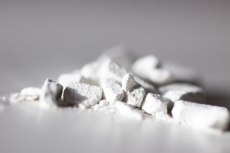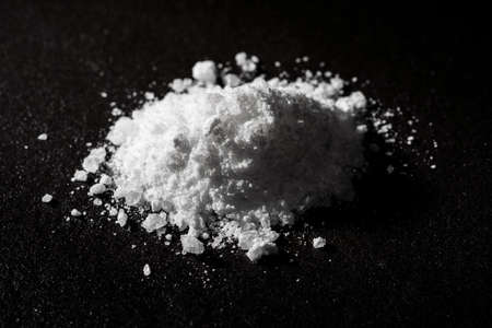 White powder on a black reflective surface, close-up