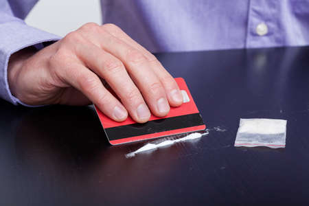 Man is preparing a line from drugs to sniff