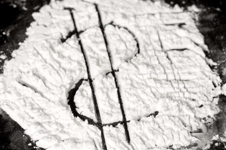 Dollar sign on cocaine on a black background