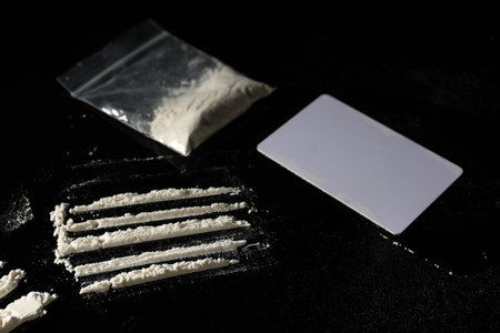 cocaine powder in lines on a black
