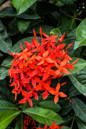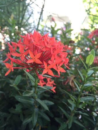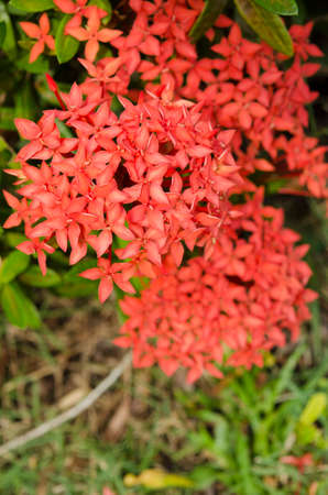 Red Ixora flower in garden, Thailand. (Ixora chinensis)