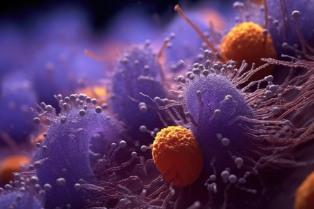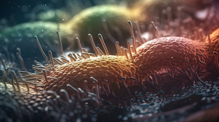Macro shot of microbes cells and bacteria, 3d microscopic virus close up, abstract background or fantasy wallpaper, by ai generative