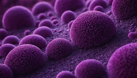 Microscopic View of Orange Bacteria Cells on an Abstract Pink, Purple, and Blue Background