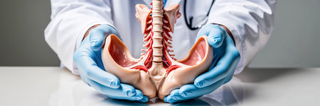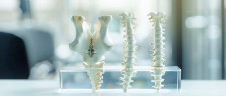 Detailed view of a human spine model, focusing on the vertebrae and alignment, medical concept