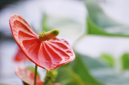 Close up of red and white Anthurium flower, Thailand.