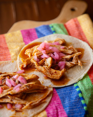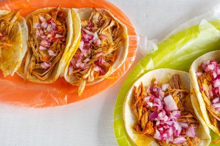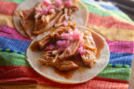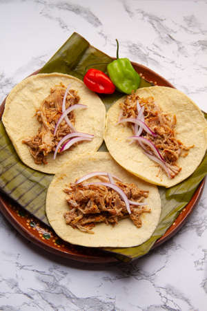 Mexican tacos of Cochinita Pibil, Mayan cuisine from Yucatan Mexico