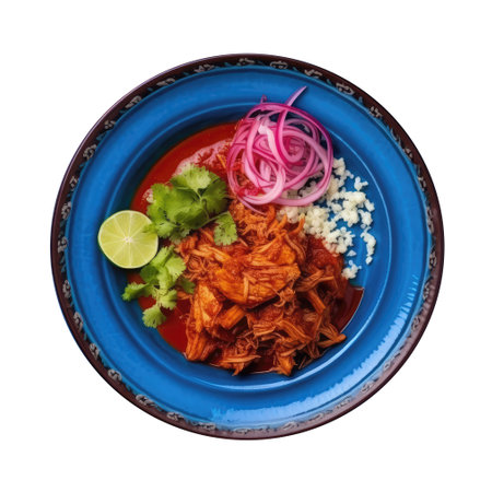 Cochinita Pibil On A Blue Abstraction Round Plate On Isolated Transparent Background Mexican Food