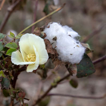 Close up of Fresh Cotton Flower on Branch in Guatemala.