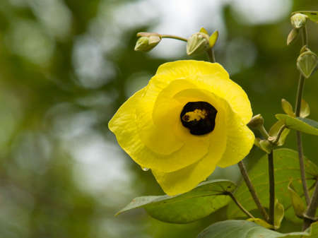 Beautiful yellow tropical flower of Sea Hibiscus (Hibiscus tiliaceus)