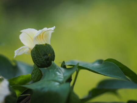 Momorodica cochinchinensis yellow flower blooming in garden on blurred of nature background