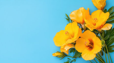 In the end of winter , a yellow flowers are blooming with the blue sky background. It's so beautiful moment.