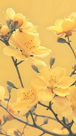 Amber-hued flowers bask in gentle sunlight, their fragile petals and intricate stamens painting a peaceful, tender springtime tableau captured in vivid detail.