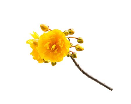 Yellow silk cotton flowers blooming or cochlospermum regium bud and green stem isolated on white background