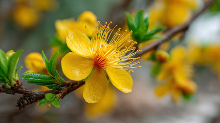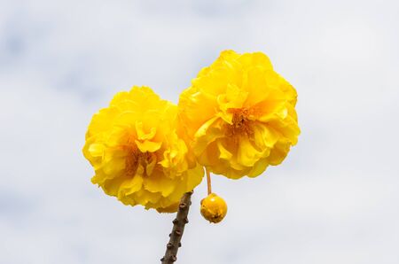 Yellow flowers of Japanese apricot (Prunus serrulata)