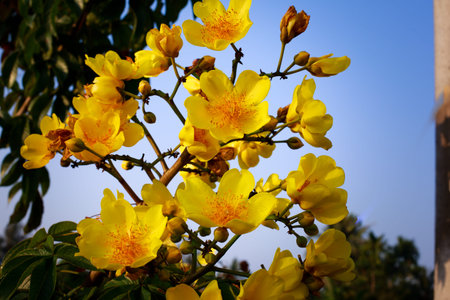 Yellow cotton flowers, Silk Cotton flowers, Tree beautiful in sky