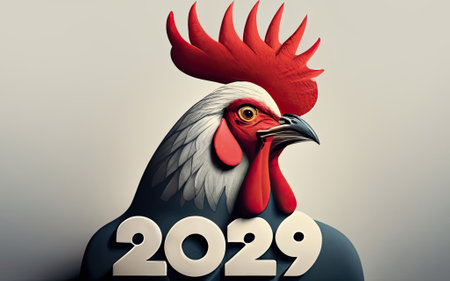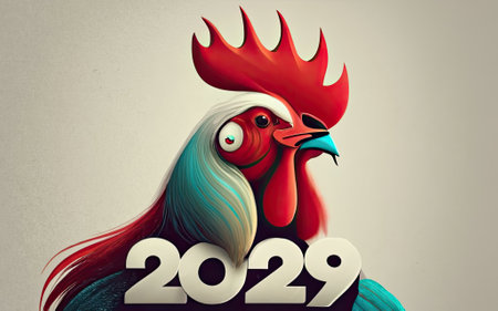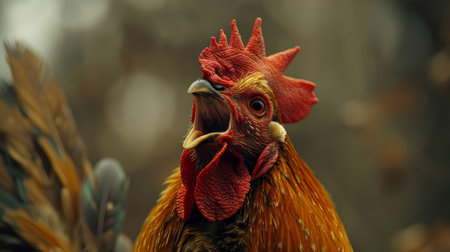 Close-up of vibrant rooster with detailed plumage and striking red comb. That the image is generated using AI.