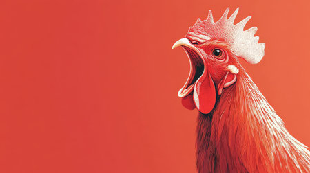 Vivid portrait of majestic rooster with bright red comb and plumage. That the image is generated using AI.