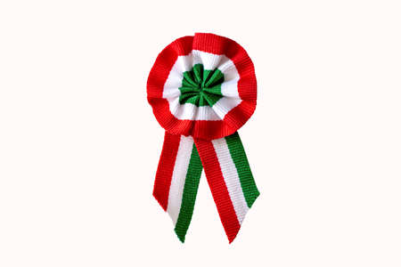 close up tricolor rosette symbol of the hungarian national day 15th of march