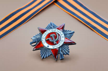 Soviet Order of the Great Patriotic War at the St. George ribbon. Symbol of Russia's victory in World War II. Isolated on white. illustrative editorial.