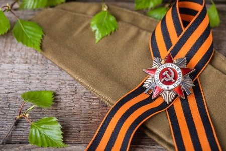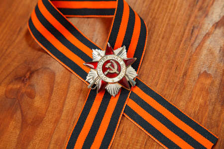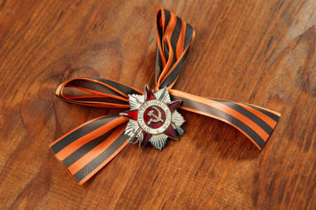 George Ribbon on wooden background and Order of the Great Patriotic War