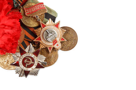 Awards of Merit in World War II by the Soviet Union on a vintage wooden background
