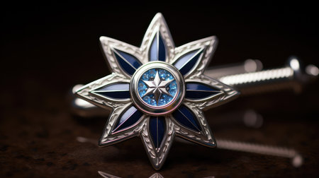 This captivating image features a golden award badge with intricate designs, elegantly placed on a soft linen background, perfect for emphasizing achievement and recognition themes.