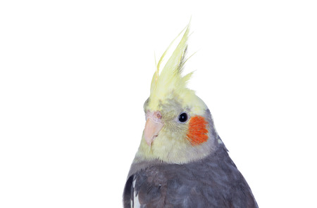 Portrait of a cockatiel isolated on a white background.
