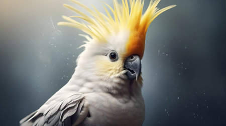 discover the vibrant beauty of a cockatiel in this photo-realistic image. with its distinctive crest, captivating yellow and grey feathers, and watchful black eyes, this charming bird takes center stage. perfect for bird lovers and designers seeking realistic visuals. (55 words), ai generated