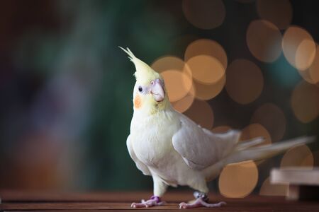 Young Lutino Cockatiel isolated on bokeh background