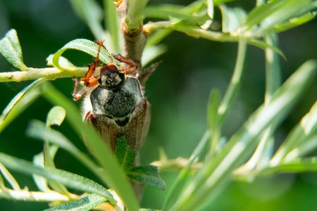 Melolontha east on the ground. Pest plant root system, the imago.