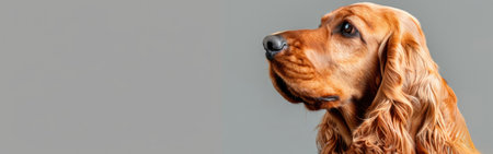 Golden cocker spaniel dog with long wavy ears and shiny coat looking calmly against a plain gray background by Generative AI
