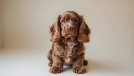 AI Generated. Adorable Brown Cocker Spaniel Sitting and Looking Up