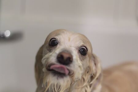 Cocker spaniel Dog gets hair cut at Pet Spa Grooming Salon. Generated ai