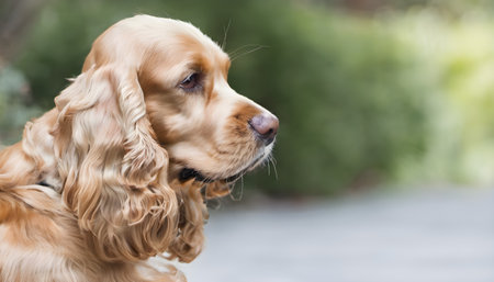 Portrait of a Cocker Spaniel in profile in nature. green background