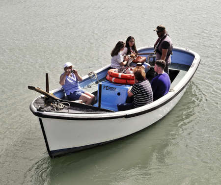 Padstow, Cornwall, April 11th 2018: Speedboat Sea Fury leaving Padstow harbour in calm water on a sunny day