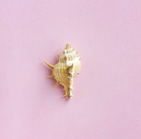 Sea shell on the pink background. Travel concept.