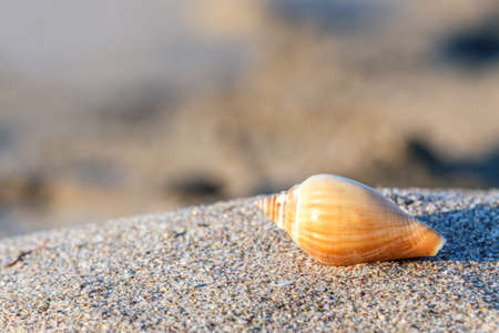 Seashell on the beach in the evening light. Shallow depth of field