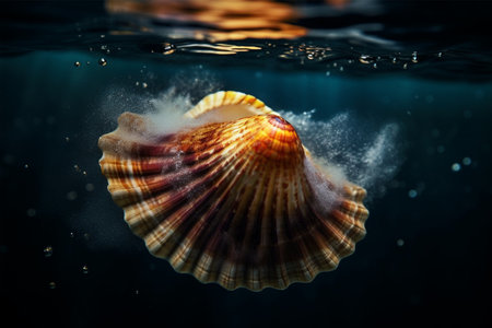 Close up of a seashell in the water. Conceptual image